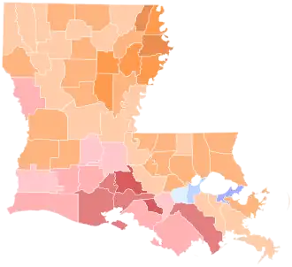 ![]() Landry: 20–30% 30–40% 40–50% 50–60% 60–70% 70–80% 80–90% Caldwell: 20–30% 30–40% 40–50% 50–60% 60–70% 70–80% 80–90% >90% Baloney: 20–30% 30–40% 40–50% 50–60% 60–70% 70–80% 80–90% >90% Jackson: 20–30% 30–40% 40–50% 50–60% 60–70% 70–80% >90% Maley: 30–40% 40–50% >90% Tie: 20–30% 30–40% 40–50% 50% No votes ![]() Landry: 20–30% 30–40% 40–50% 50–60% 60–70% 70–80% 80–90% Caldwell: 20–30% 30–40% 40–50% 50–60% 60–70% 70–80% 80–90% >90% Baloney: 20–30% 30–40% 40–50% 50–60% 60–70% 70–80% 80–90% >90% Jackson: 20–30% 30–40% 40–50% 50–60% 60–70% 70–80% >90% Maley: 30–40% 40–50% >90% Tie: 20–30% 30–40% 40–50% 50% No votes ![]() Landry: 50–60% 60–70% 70–80% 80–90% >90% Caldwell: 50–60% 60–70% 70–80% 80–90% >90% Tie: 50% No votes ![]() Landry: 50–60% 60–70% 70–80% 80–90% >90% Caldwell: 50–60% 60–70% 70–80% 80–90% >90% Tie: 50% No votes | |||||||||||||||||||||||||||||||||||||