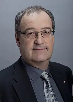Guy Parmelin, of the SVP/UDC, was ultimately elected by the Federal Assembly on 9 December 2015.[1] Parmelin, a farmer and winegrower from Bursins in the canton of Vaud, became the first Federal Councillor of the Swiss People's Party from the French-speaking part of Switzerland.[1][6]