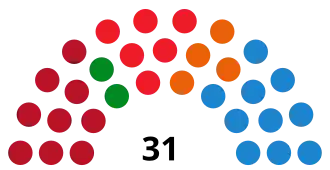 The City Council of Zaragoza (Spanish: Ayuntamiento de Zaragoza) was the top-tier administrative and governing body of the municipality of Zaragoza, composed of the mayor, the government council and the elected plenary assembly.[1] Elections to the local councils in Spain were fixed for the fourth Sunday of May every four years.[2]