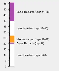 - ^2 – Esteban Ocon received two five-second penalties for speeding in the pit lane.[11]
