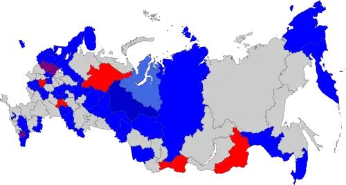 | United Russia | 28,527,828 | 55.23 | 140 | 25,162,770 | 50.12 | 203 | 343 | +105 | |