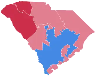 Out of 3.12 million registered voters, 2.10 million voted, a turnout of 67.86%.[1] Trump continued the Republican tradition in South Carolina, carrying the state with 54.9% of the vote. Clinton received 40.7% of the vote, underperforming Barack Obama's 2012 performance by about 4%.[2] Trump became the first Republican to win the White House without carrying Charleston County since Dwight Eisenhower in 1956.
