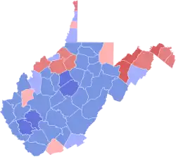 Republican Donald Trump easily carried West Virginia, capturing 68.5% of the vote and sweeping every county in the state, his strongest vote share in the nation.[1]