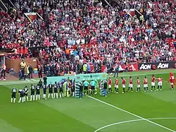 Manchester United players lining up before a Premier League match against West Ham United in August 2017 at Old Trafford | ||||
