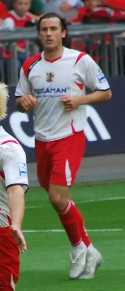 Going into November, Aspin signed 20-year box-to-box midfielder Chris Regis, who had previously entered non-League football after spending time on the books at Arsenal, Southampton and Colchester United.[50] Vale then travelled to Newport County, and returned home with a point after coming back from 1–0 down, Anton Forrester scoring with his first league appearance of the campaign.[51] Fellow relegation battlers Barnet arrived in Burslem on 18 November, and Vale claimed a hard-fought victory after Pope converted a late penalty won by Gibbons.[52] This was Port Vale's first penalty since 20 January.[53] However, three days later the Vale fell to a 4–0 defeat at home to Mansfield Town, though Aspin said his team worked hard and the scoreline was not a fair reflection on the game.[54] They then suffered a 3–1 defeat away to Lincoln City, having looked second best to the National League champions for most of the match; Aspin said the performance was not good enough.[55] Also in November, long-serving full-back Adam Yates returned from a loan spell at Macclesfield Town only to suffer extensive facial injuries in a collision with Hornby in a reserve team match; despite his injury and in light of his service to the club, Yates was given a contract extension to keep him on until the end of the season.[56] However, he went on to announce his retirement from playing in March.[57]