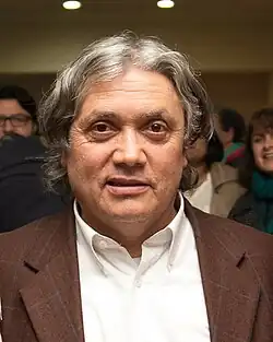 Alejandro Guillier was proclaimed by the Social Democrat Radical Party as candidate on 7 January 2017.[27] On 9 April 2017 he was chosen by the Socialist Party's Central Committee as its candidate after a secret election in which he beat former president Ricardo Lagos by nearly two-thirds of the vote;[28] he was proclaimed as candidate by that party on 21 April 2017.[29] On 7 May 2017, the Communist Party proclaimed him as their candidate.[30] On 13 May 2017 the Party for Democracy unanimously proclaimed him as their candidate in a show of hands.[31] As the New Majority coalition failed to organize a primary and Guillier decided to stay as an independent, he was forced to collect thousands of signatures in order to compete.[32] On 4 August 2017 he officially registered his candidacy before the Servel, presenting 61,403 signatures, more than the 33 thousand needed to register an independent candidacy.[24][25][26]