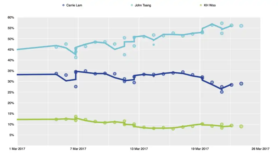 - ^ "John Tsang backed by almost 92 per cent of voters in mock poll for Hong Kong's next leader". South China Morning Post. 19 March 2017.