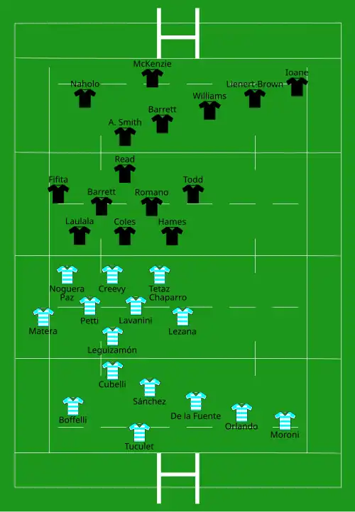| Try: Milner-Skudder 7' m Lienert-Brown 17' m Dagg 36' m Fifita 50' c McKenzie 62' c B. Barrett 77' c Con: Sopoaga (3/3) 52', 64', 79' Pen: Sopoaga (1/2) 69' | Report[13] | Try: Sánchez 40' c Con: Sánchez (1/1) 40' Pen: Sánchez (2/3) 13', 49' Boffelli (2/2) 24', 42' Drop: Sánchez (1/1) 28' |