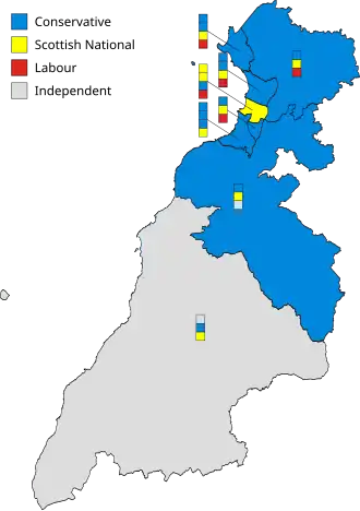 The Conservatives retained their position as the largest party returning 12 councillors - two more than in the previous election. The Scottish National Party (SNP) maintained their total of nine councillors to remain as the second party while Labour lost four seats. The number of independents returned remained at two.
