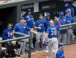 Center fielder Kevin Pillar underwent surgery in late October to repair a thumb ligament he tore in August, and was expected to be ready for 2017 spring training.[4] Jason Grilli's option for the 2017 season was picked up by the team on November 5.[5] On November 7, Bautista and Encarnación were each issued a $17.2 million qualifying offer for the 2017 season.[6] R. A. Dickey signed with the Atlanta Braves on November 10.[7] Lourdes Gurriel Jr., a Cuban player who defected in February 2016, signed a seven-year, $22 million contract with the Blue Jays on November 12.[8] Encarnación and Bautista each declined their qualifying offers on November 14. Kendrys Morales signed a three-year, $33 million contract with the Blue Jays on November 18.[9] The Blue Jays also claimed Dominic Leone and Leonel Campos on November 18,[10] and added Anthony Alford, Ryan Borucki, and Richard Ureña to the 40-man roster to protect them from the Rule 5 draft.[11] The St. Louis Cardinals and Brett Cecil finalized a four-year, $30.5 million contract on November 21.[12] Steve Pearce signed a two-year, $12.5 million contract with Toronto on December 5.[13] The Blue Jays selected Glenn Sparkman in the Rule 5 draft on December 8, and lost minor leaguers Jorge Flores, Jorge Saez, and Matt Smoral in the Triple-A phase of the draft.[14]