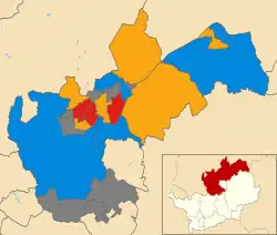 The Conservatives had a majority on the council prior to the election, but lost a net total of six seats, leaving the council under no overall control. The Conservative leader and leader of the council prior to the election was Lynda Needham, who lost her Letchworth South West seat after a tie with the Liberal Democrat candidate, Sean Prendergast, which was settled by drawing lots.[3] Whilst the Conservatives remained the largest party, with six seats more than any other party, a Labour and Liberal Democrat coalition took control of the council after the election, with the Labour leader, Martin Stears-Handscomb, becoming leader of the council, and the Liberal Democrat leader, Paul Clark, becoming deputy leader of the council.[4] David Levett became new leader of the Conservative group, which became the opposition.[5]