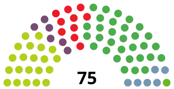 The table below shows the composition of the parliamentary groups in the chamber at the time of dissolution.[31]