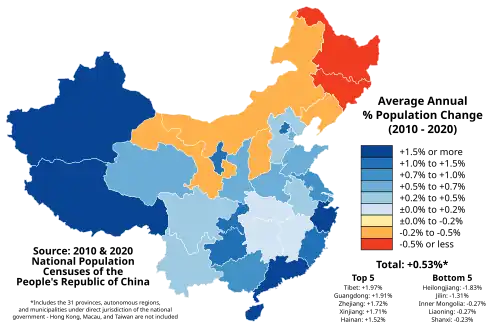 1. ^ "Communiqué of the Seventh National Population Census (No. 3)". National Bureau of Statistics of China. May 11, 2021. Archived from the original on May 11, 2021. Retrieved May 11, 2021.