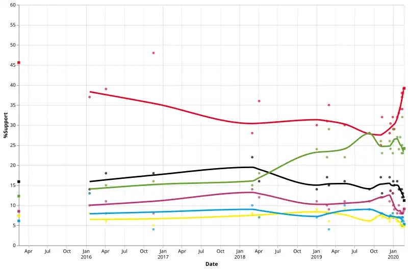| 2020 state election | 23 Feb 2020 | – | 39.2 | 11.2 | 24.2 | 9.1 | 4.9 | 5.3 | 6.1 | 15.0 |