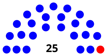 | Party | Candidates | Vote | % | Seats | ||||||||||