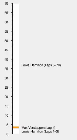 On lap 30, Ferrari, betting on there being no rain, had Vettel pit for hard tyres. This became the view of all the teams in the next few laps, and all of the drivers pitted for new slick tyres. Three laps later, Leclerc was involved in another close fight, this time with Lando Norris for 13th. After Hamilton's pit stop on lap 40, his lead over Verstappen stood at over 20 seconds. This was enough time for him to pit near the end of the race onto soft tyres, so he could set the fastest lap of the race, a 1:16:627. In the final few laps, Albon overtook Vettel for fifth place, and Sainz overtook the other Ferrari of Leclerc for tenth (Sainz would later be promoted to ninth following a penalty for Magnussen). On the final lap, Bottas had a chance to overtake Verstappen for second place; he was not, however, able to get past.[17]