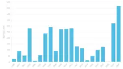 It has been the worst flooding since 1931 in Karachi, killing at least 41 people and leaving hundreds of thousands trapped.[15] The record monsoon rains with inadequate drainage systems in the city caused this flood.[8] The heavy rainfalls shattered all-time records for rainfall in a single day and other records.[16] During August 2020, 484 mm of rain fell and was the highest amount of rain in August back to 1931.[16] The rainfall for a single day set a new record of 223.5 mm,[16] surpassing the previous high of 211.3 mm set in 1967.