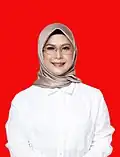 Siti Nur Azizah is a daughter of Vice President of Indonesia Ma'ruf Amin, and deputy secretary general in the Democratic Party.[11] Prior to the election, she had run for a seat in the House of Representatives as a United Development Party candidate, and had worked for 15 years in the Ministry of Religious Affairs beforehand.[12][13] Her running mate, Ruhamaben from the Prosperous Justice Party, is a former aeronautical engineer who had served in South Tangerang's legislature as its deputy speaker. They were supported by PKS, the Democratic Party, and PKB.[14]