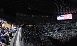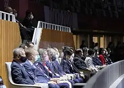 By late 2020 and early 2021, organizers were also debating the issue of audience attendance. While early discussions considered reduced capacity, by July 2021 it was determined that no live audience would be permitted due to public health concerns. The final compromise allowed only competing athletes (if they chose to attend), a maximum of six officials from each delegation, and a limited number of invited VIP guests.[31][5] Much of the artistic and cultural programming was modified to comply with social distancing requirements, with many segments being pre-recorded rather than performed live.[6] These measures reinforced the unprecedented and subdued atmosphere surrounding the Games.