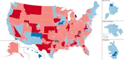 In the 2018 United States House of Representatives elections, the Democrats had won 235 seats. Leading up to the 2020 elections, the Democrats were projected by many polls to expand their majority by up to 15 seats due to the unpopularity of then-President Donald Trump. While Democrats ultimately retained control of the House following the 2020 elections, Republicans made a net gain of 14 seats[2] and the Democrats entered 2021 with a narrow 222–213 House majority.[3][4] This was the first time since 2004 that the Republican Party made net gains in the House during a presidential election year. This led to Democrats' smallest majority since 1942. As of 2024, this remains the last time that the Democrats have won a majority in the United States House of Representatives.