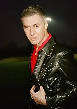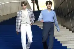 From 2023 to 2024, the predominant colours in Britain, Australia, France and America were red, white[283] and blue.[284] As in the mid-to-late 1970s, Western shirts with pearl snaps in denim, black gabardine or bright madras plaid made a comeback, and sometimes featured contrasting yokes[285] and cuffs with intricate embroidery.[286][287] Moccasins, stonewash denim waistcoats with decorative fringes, preppy loafers, navy blue suits and sportcoats, Wrangler jeans[288] or Levi Strauss jeans,[289] suede fringe jackets popularized by Pharrell Williams, Noel Fielding, Post Malone and Beyonce in anticipation of the release of her Cowboy Carter album,[290] straight leg jeans instead of the skinny jeans fashionable from the late 2000s until the mid-2010s,[291] stetsons, white baseball jerseys with bold red or blue pinstripes, striped blue neckties, baggy white pants, Union Jack motifs, Panhandle Slim, Rockmount and Scully sportcoats with contrasting Western-inspired yokes and embroidery,[292] barrel jeans, duster coats as worn in the Yellowstone TV series,[293] preppy style college sweaters, retro blue and white striped football shirts,[294] chelsea boots with cowboy boot styling, two-button blazers with red and blue boating stripes, V-neck sweater vests, royal blue baseball jackets with white sleeves, Howler Brothers gilets,[295] shirts and suits worn open to expose the chest,[296] and boxy leather reefer jackets were popular on both sides of the Atlantic.[297][298]