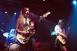 The indie sleaze revival of the 2020s draws inspiration from the American Apparel-aesthetic and the late 2000s indie electronic and electroclash scenes.[350][351] It features skin-baring late 2000s styles like t mini skirts, smudged eyeliner, Lime Green, crop tops, and high-waisted shorts.[352] The look embraces rebellious aesthetics, often paired with chunky boots, leather jackets, and dark makeup. The Dare had a but notable influence on this trend, contributing to the DIY, unapologetic vibe. Charli XCX also plays a role in the resurgence, with her albums Brat and Brat Summer reflecting this experimental approach to fashion. The style channels the chaotic, edgy energy of the indie electronic era.[353][354]