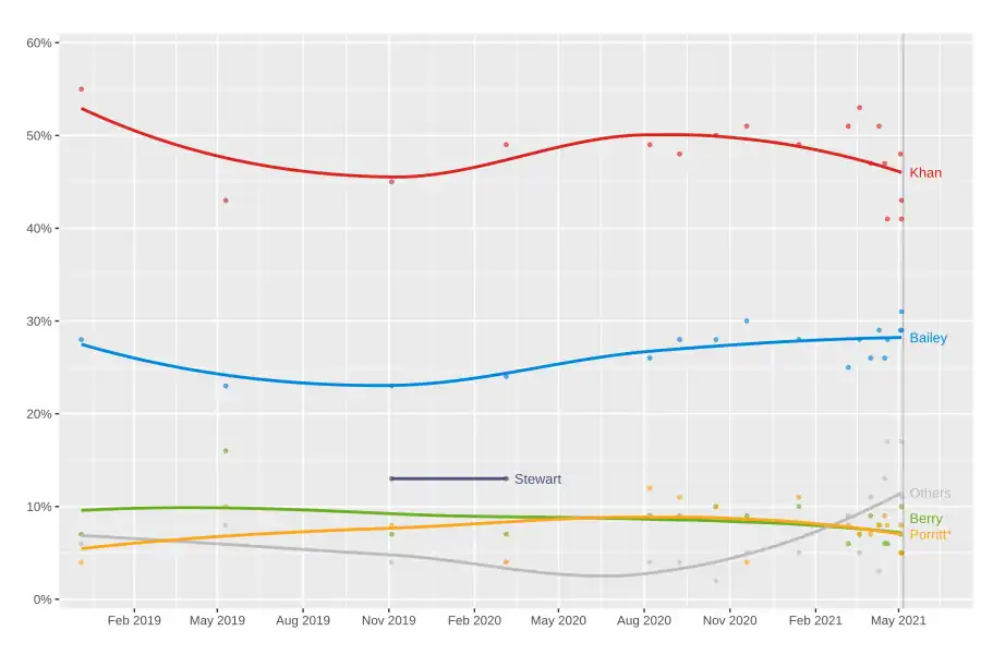 205. ^ Rayner, Tom (8 May 2021). "Election results: Labour braced for tight finish in race for London mayor - as support for Sadiq Khan is squeezed". Sky News. Archived from the original on 8 May 2021. Retrieved 9 May 2021.
