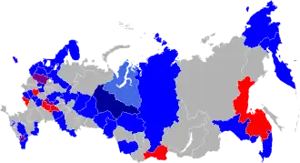 The 2021 Russian regional elections took place in Russia on Sunday, 19 September 2021 with possibility of voting on 17 and 18 September provided by the electoral authorities.[1] There will be the legislative election for the 8th State Duma, ten gubernatorial elections, 39 regional parliamentary elections, and many elections on the municipal and local level.