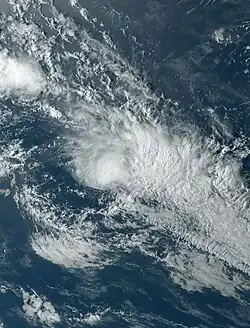 Late on January 5, the FMS reported that Tropical Disturbance 03F had formed near New Caledonia.[19] The system generally moved southeast before the FMS ceased advisories on the system, on January 7.[20] However, on January 8, the JTWC gave the system's chance for development, although in favorable environment, as low since it was in close proximity with Hale.[21] But upon reanalysis, convection re-fired, and an eye feature was visible,[21] although the JTWC later reported that the system had dissipated the following day.[22]