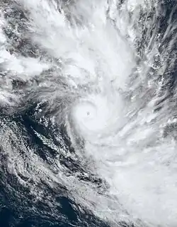 On February 22, the FMS reported that a low-pressure system was located just south of Samoa, and gave it a low chance of formation into a tropical cyclone in the next 5 days.[76] Under a moderate sheared environment and warm sea surface temperatures, the system organized into a tropical disturbance late on the next day, with the FMS designating it as 08F.[77] The disturbance steered southwest from a subtropical ridge on February 26 after upgrading to a tropical depression.[78] During February 26, the JTWC issued a Tropical Cyclone Formation Alert (TCFA) on the system.[79] The system was upgraded to a Category 1 tropical cyclone and attained the name Judy from the FMS after improved organization the same day.[80] The JTWC also upgraded the system to Tropical Cyclone on February 27, initiating advisories on it as Tropical Cyclone 15P.[81] Judy further developed due to high sea surface temperatures of 30 °C (86 °F), leading to the FMS to upgrade its status to Category 2 tropical cyclone the same day,[82] before upgrading further to a Category 3 severe tropical cyclone on February 28.[83] Judy eventually became a Category 4 on the Australian scale and Category 3 on the SSHWS.[84][85] The system began to weaken as it headed southeastward, entering the area of responsibility of the MetService.[86] The JTWC issued their last warning on the system on March 3 as it transitioned to a subtropical cyclone.[87] At the same time, the MetService had downgraded the system to Category 2 tropical cyclone status.[88] It later became an extratropical cyclone by the next day.[89]