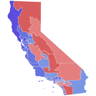 Lara won 41 of 52 congressional districts, including two that elected Republicans, with the remaining 11 going to Howell, including one that elected a Democrat.[30]