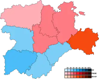 - ^ a b "Resolución de 7 de marzo de 2022, de la Junta Electoral de Castilla y León, por la que se publica el resumen de los resultados de las elecciones a las Cortes de Castilla y León convocadas por Decreto 2/2021, de 21 de diciembre, y celebradas el 13 de febrero de 2022, conforme a las actas de escrutinio general y de proclamación de electos remitidas por las Juntas Electorales Provinciales" (PDF). Boletín Oficial de Castilla y León (in Spanish). Retrieved 9 March 2022.