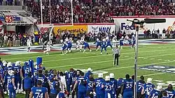 Kansas successfully attempts a two-point conversion that tied the game during the fourth quarter