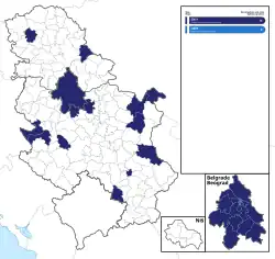 Ivica Dačić, the president of the National Assembly, called the local elections on 15 February, and shortly afterwards Aleksandar Vučić, the president of Serbia, dissolved the National Assembly, after which the official electoral campaign began.[19] Dačić announced that local elections would be held in the municipalities of Aranđelovac, Bajina Bašta, Belgrade, Bor, Doljevac, Kladovo, Knjaževac, Kula, Lučani, Majdanpek, Medveđa, Sečanj, Sevojno, and Smederevska Palanka.[20][21] The 2022 general election occurred simultaneously on 3 April.[22][19]