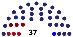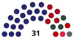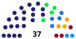 In the municipality of Aranđelovac, there were 36,847 eligible citizens that were able to vote in the local election.[28][31][32] The local City Election Commission reported that the turnout was 63%.[32] The Serbian Progressive Party won 19 seats, while the SPS–JS coalition won seven. The Serbian Party Oathkeepers won 5 seats, while the United for the Victory of Serbia coalition won four, and the Dveri–ZS coalition won three seats. Two seats were won by POKS, while the Enough is Enough party won one.[32][33]