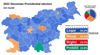 In the first round Anže Logar received 34% of the voter share against 27% for Nataša Pirc Musar.[11] Milan Brglez was third with around 15%.[11] For the second round Golob then turned his support to Pirc Musar.[11]