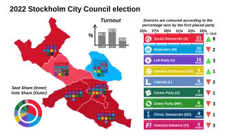 The 2022 Stockholm municipal election was held on 11 September 2022, concurrently with the 2022 Swedish general election. The election determined how many seats each party would be allocated on the 101-member Stockholm city council (Stockholms kommunfullmäktige) through a system of proportional representation.