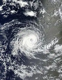 On 2 December, the Australian Bureau of Meteorology (BoM) reported that Tropical Disturbance 03F, which was re-designated as Tropical Low 02U, had formed in the South Pacific Ocean in Fiji's area of responsibility.[23] Two days later, on 00:00 UTC of 4 December, the system would enter the Australian area of responsibility.[24][25] The Joint Typhoon Warning Center (JTWC) issued a Tropical Cyclone Formation Alert (TCFA) later that day, projecting a high likelihood of a significant tropical cyclone developing.[26] Later the next day, the JTWC subsequently initiated advisories on the system and classified it as Tropical Cyclone 03P.[27] The BoM subsequently followed suit and upgraded it to a Category 1 tropical cyclone, naming it Jasper.[5] Jasper started to track southward under the steering influence of a near equatorial ridge to the east.[28] During the next day, the cyclone's centre continued to organise, with deep convective bands starting to wrap around the centre, prompting the JTWC to upgrade the system to a Category 1 hurricane.[29] Jasper rapidly intensified into a Category 3 severe tropical cyclone,[6] due to being in an environment with warm sea surface temperatures and low wind shear. The next day, it further intensified, becoming a Category 5 severe tropical cyclone.[30] Operationally, the BoM classified Jasper as a high-end Category 4 severe tropical cyclone with winds of 195 km/h (120 mph), but during post-cyclone reanalysis concluded a peak wind speed of 215 km/h (130 mph) based on Synthetic-aperture radar measurements.[1][31] Shortly thereafter, Jasper began weakening, with its eye becoming cloud-filled and the deep convection eroding due to dry air entrainment.[32] Jasper would reintensify, and at 12:00 UTC on 13 December, made landfall as a Category 2 tropical cyclone in Wujal Wujal, Queensland.[7] After making landfall, the JTWC discontinue warnings on the system later that day.[33] By 14:00 UTC that day, the BoM reported that Jasper had weakened to a tropical low.[34] However, Jasper remained traceable, and the BoM would give the tropical low a moderate chance of redeveloping into a tropical cyclone on 15 December.[35] However, they would soon downgrade its chances of re-developing into a very low as the storm turned southeast further inland, causing the tropical low to rapidly weaken, and on 18 December, Jasper was last noted over the Cape York Peninsula.[36]