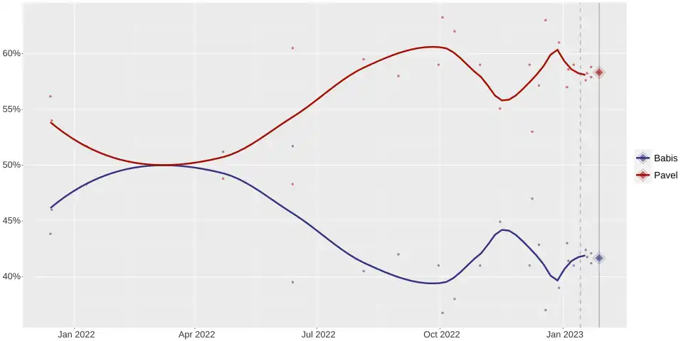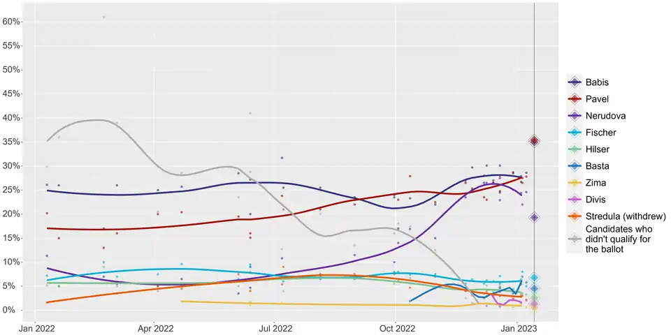 - ^ a b "Exkluzivní projekce naznačuje, jak dopadne 2. kolo. Kolik voličů získá Babiš od Nerudové?". cnn.iprima.cz (in Czech). Retrieved 17 January 2023.