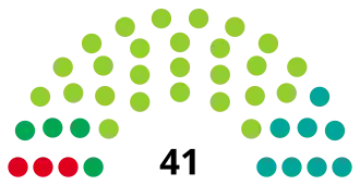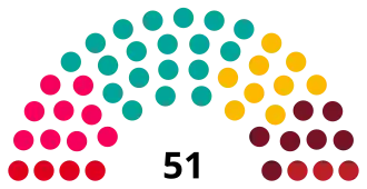 Size of cabinet in each municipality varies depending on populations. Lowest population municipalities with up to 5,000 inhabitants have 15 seats, while largest municipalities with over 500,000 inhabitants have 51 seats.[2]