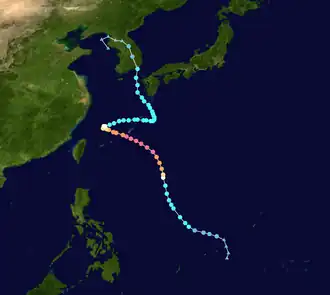 - ^ Prognostic Reasoning for Tropical Storm 16W (Sanba) Warning No. 9 (Report). United States Joint Typhoon Warning Center. October 19, 2023. Archived from the original on October 22, 2023. Retrieved October 22, 2023.