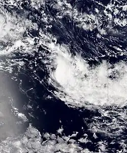 On 5 January, a low-pressure area formed near Samoa. The Fiji Meteorological Service (FMS) noticed it and designated it as a tropical disturbance on the same day, stating it lay within a low sheared environment with good upper divergence, and over sea surface temperature at 30°C. FMS analysed the potential for tropical cyclone development to be low to moderate.[4] Later that day, the FMS downgraded it to a very low chance. After heading southeastward, it became extratropical on 8 January, causing the FMS to cease advisories.