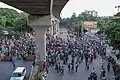 After the High Court ruled in favor of quotas on 5 June 2024, the students of various universities in Dhaka united to demand quota reform. After the movement was initially started, it was postponed due to Eid al-Adha and the summer holidays. After the holidays, the agitation started again peacefully but gradually became widespread. Initially, the students and teachers of many public universities and other educational institutions joined the movement.[113] Later, the students of private universities also followed suit by joining the public demonstration.[114] Under the banner of Anti-discrimination Students Movement (Bengali: বৈষম্যবিরোধী ছাত্র আন্দোলন), students started the Bangla Blockade. During the movement, the Appellate Division issued a status quo for four weeks on 10 July, canceling the freedom fighters' quota. Reacting to the court verdict, the students said they are seeking a final solution to the quota issue from the government, claiming the movement has nothing to do with the court. The protest also affected the domestic train and road transportation networks across Bangladesh.[115][116]
