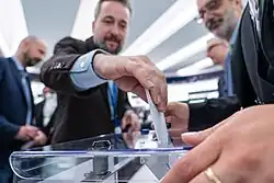 The President of the European Parliament is elected through a secret vote of MEPs, requiring an absolute majority of cast votes for the election.[2] Article 14 of the Treaty on European Union states that Parliament elects its president from among its Members.[1][6]