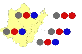 All elections for councillor positions are elected using proportional representation.[15] Central Coast has an Australian Senate-style ballot paper with above-the-line and below-the-line voting.[16] The council is divided into five wards, each electing three councillors.[17][18]