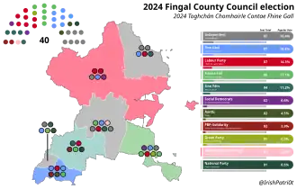 An election to all 40 seats on Fingal County Council was held on 7 June 2024 as part of the 2024 Irish local elections.[1] Fingal is divided into 7 local electoral areas (LEAs) to elect councillors for a five-year term of office on the electoral system of proportional representation by means of the single transferable vote (PR-STV).[2]
