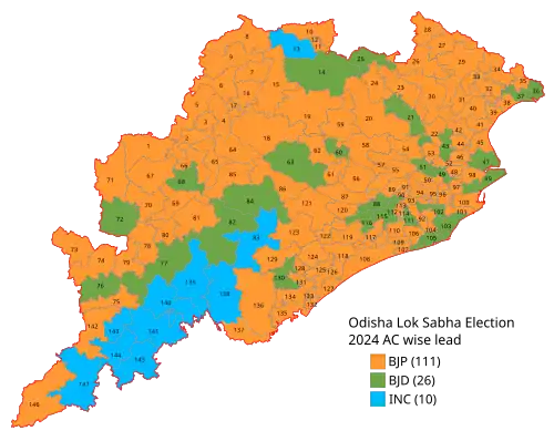 2024 Odisha Lok Sabha Elections Assembly Wise Leads Map