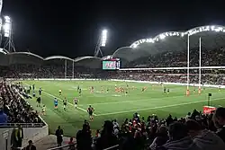 - Preliminary final – Melbourne progress to the club's 11th appearance in the NRL Grand Final, defeating the Sydney Roosters 48–18 at AAMI Park. Jahrome Hughes scored a hat-trick, while Ryan Papenhuyzen and Cameron Munster both scored doubles.[62] The attendance of 29,213 was the third highest attendance for a rugby league match at the venue.[63] In the first minute of the match, Nelson Asofa-Solomona was sent to the sin bin by referee Grant Atkins for a tackle on Roosters forward Lindsay Collins. Asofa-Solomona was later charged by the NRL Judiciary with a grade three careless high tackle charge which carried a minimum four-match suspension.[64]