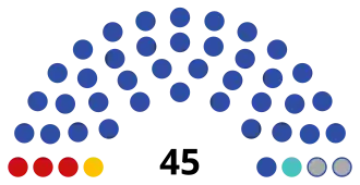 Under current election laws, the City Duma is elected for a term of five years by first-past-the-post voting in 45 constituencies.[19] Currently Moscow is the only federal subject of Russia using full majoritarian system to elect members of the regional legislature.