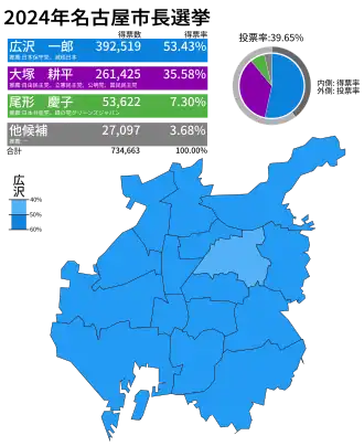 - ^ "名古屋市長選挙2024" (in Japanese). NHK. Retrieved 3 July 2025.